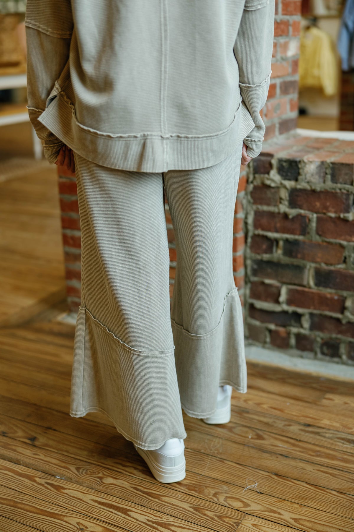 TEXTURED MINEREAL WASHED BELLBOTTOM PANTS