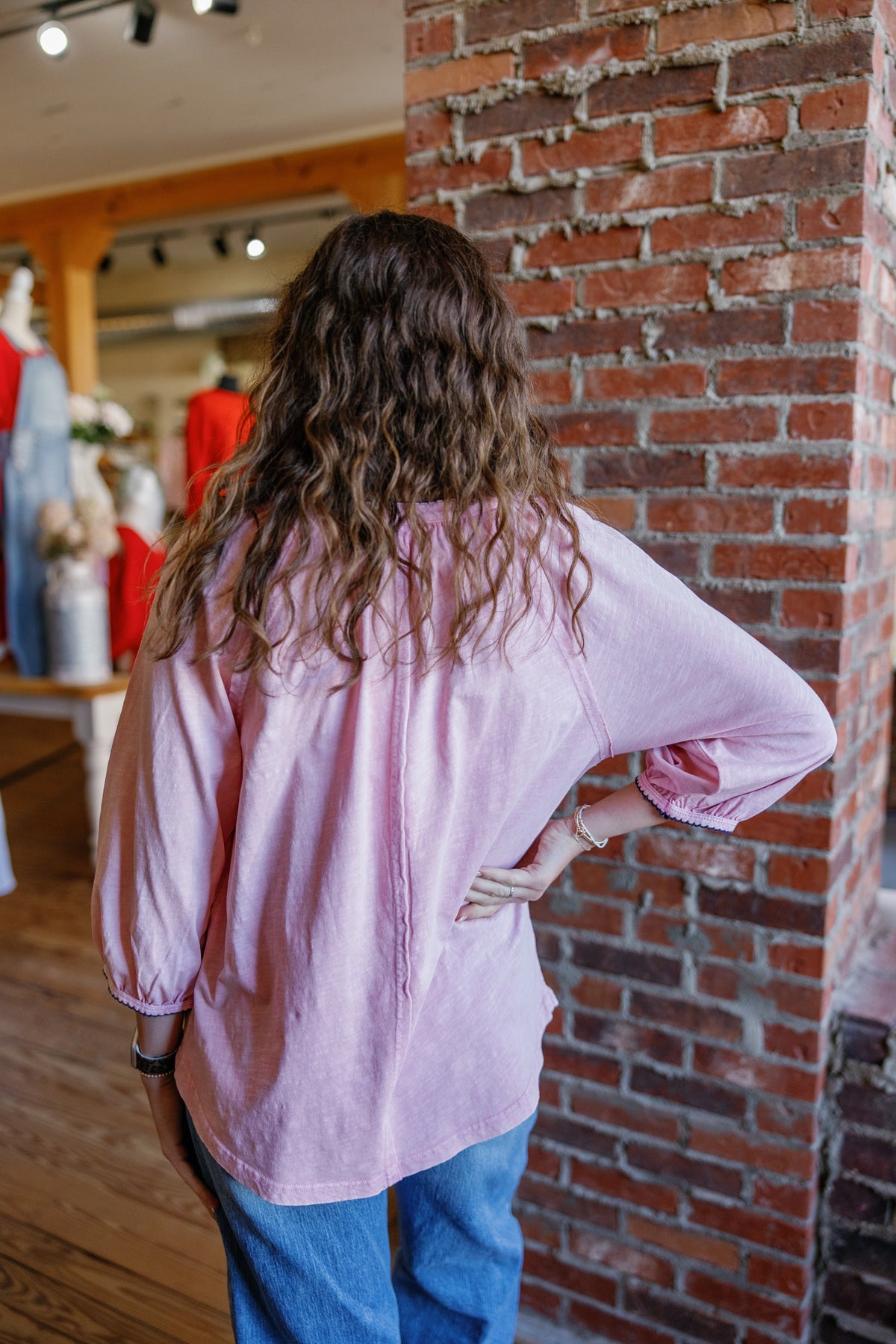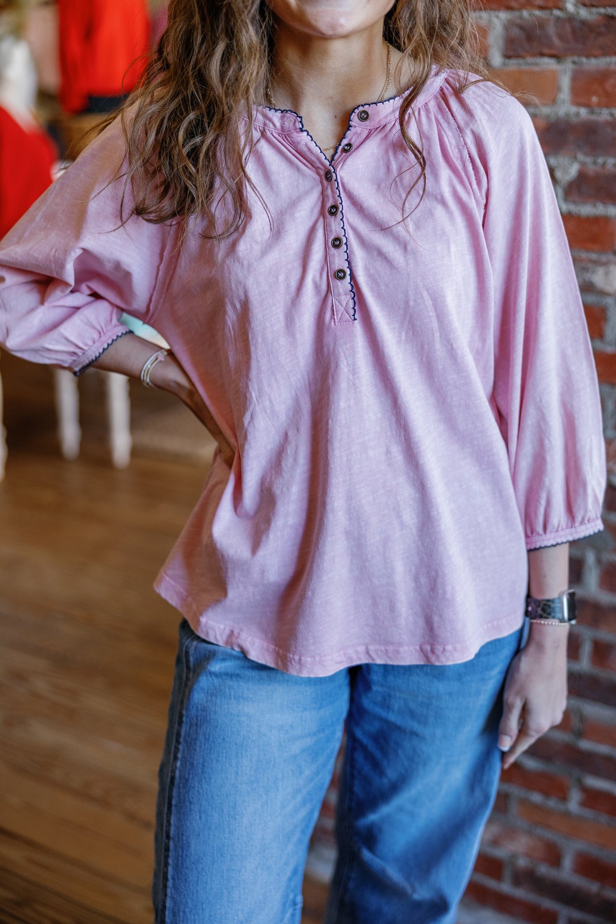 WASHED COTTON SLUB BUTTON FRONT HENELY TOP