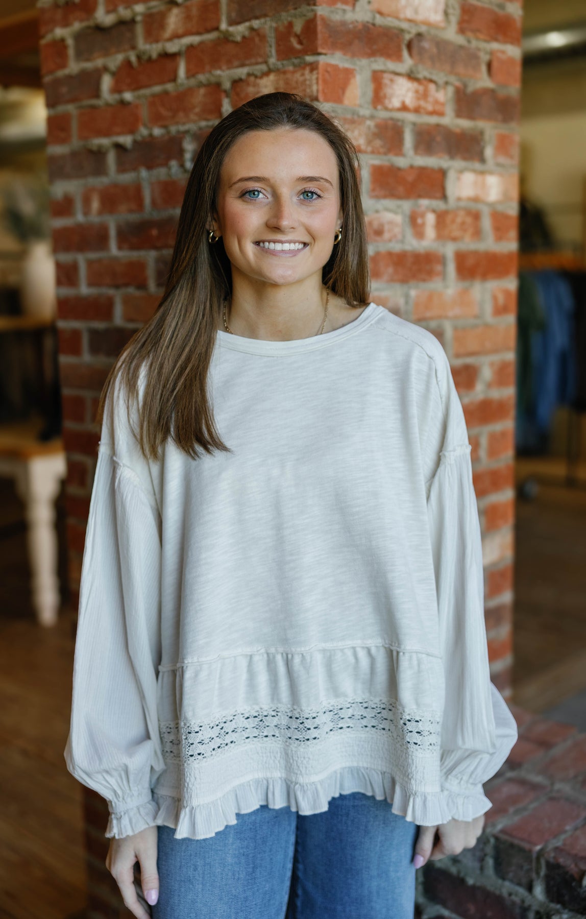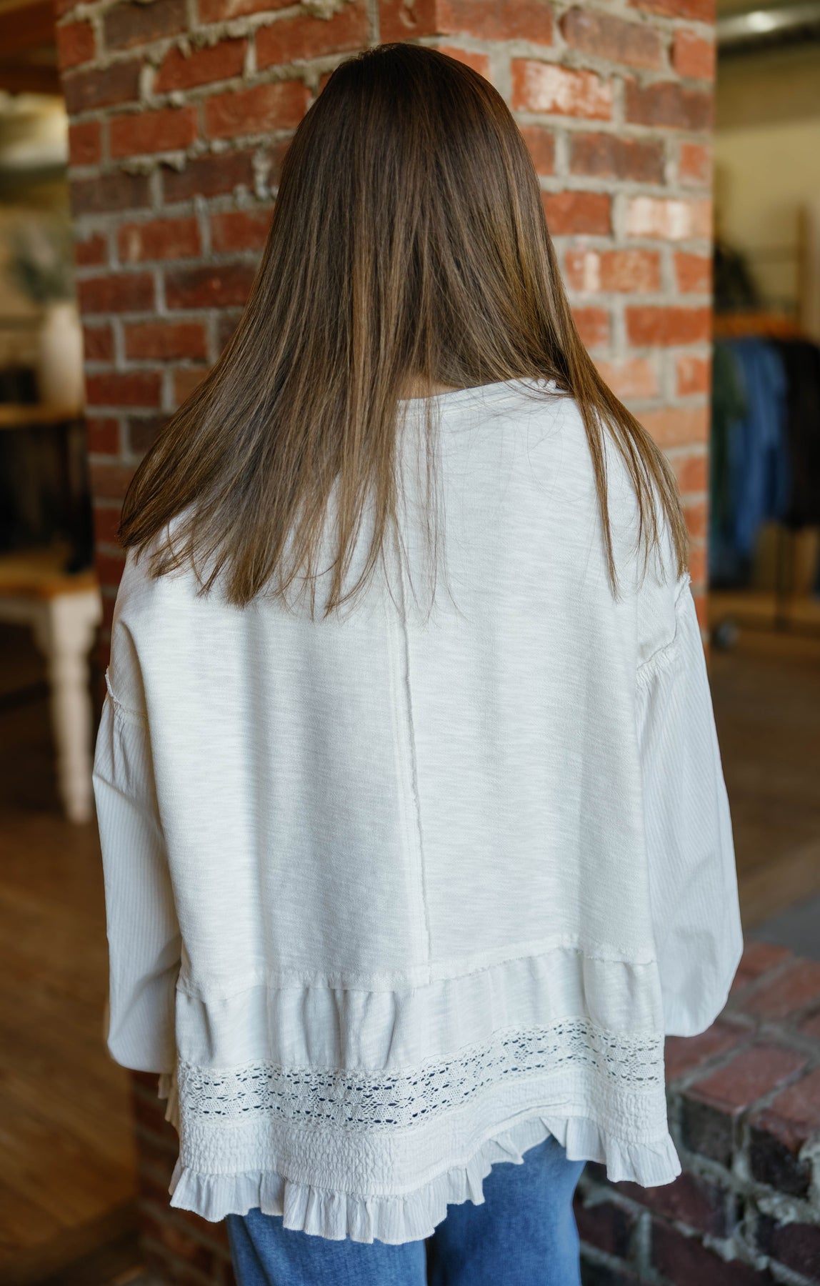 LACE MIX RUFFLE BOTTOM WASHED TOP