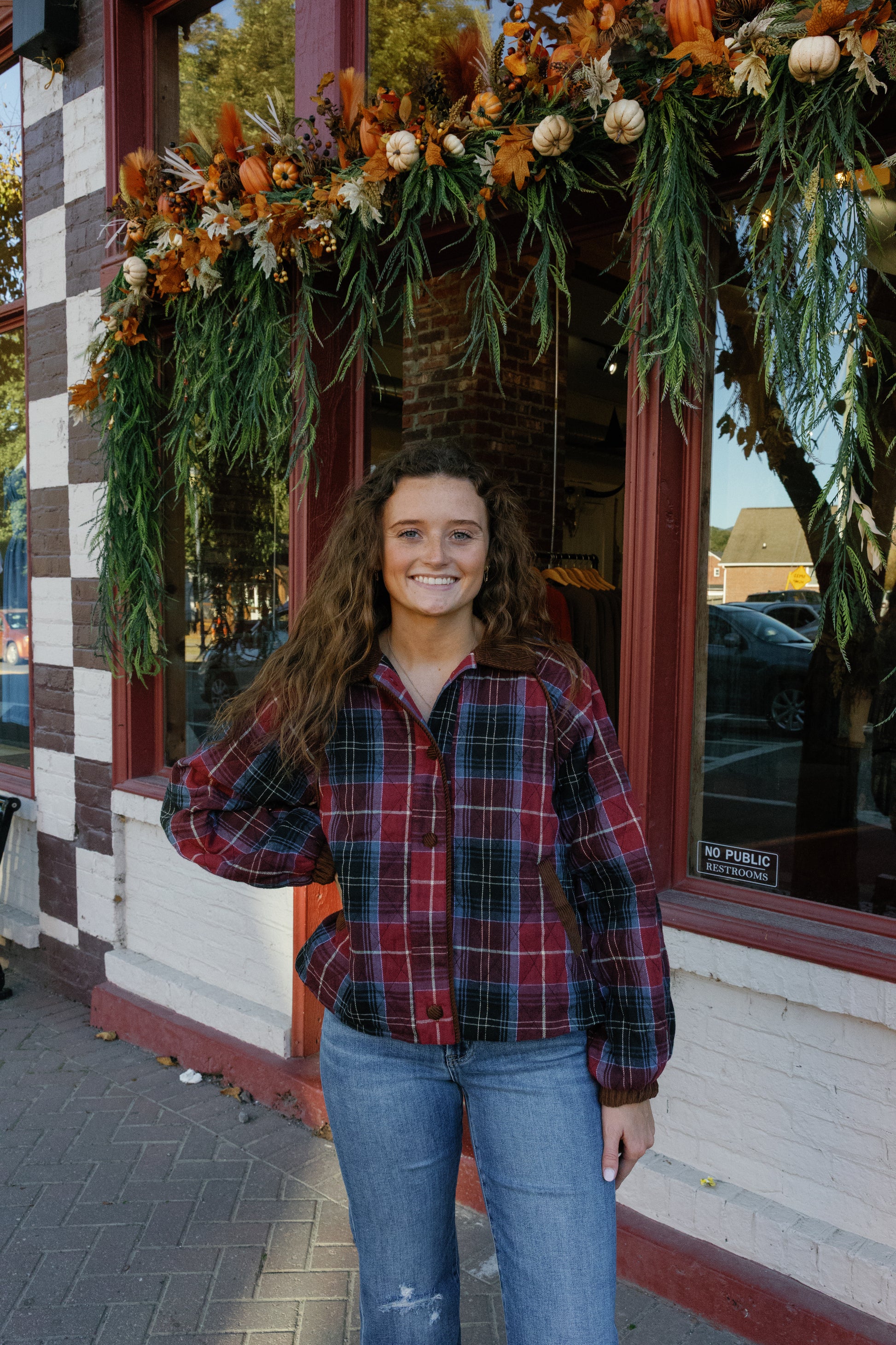 + Plaid quilted jacket with contrast corduroy detail + Corduroy collared neckline + Corduroy covered buttons + Corduroy piping raglan seams + Long puff sleeves + Elastic cuffs in corduroy + Pockets + Lined