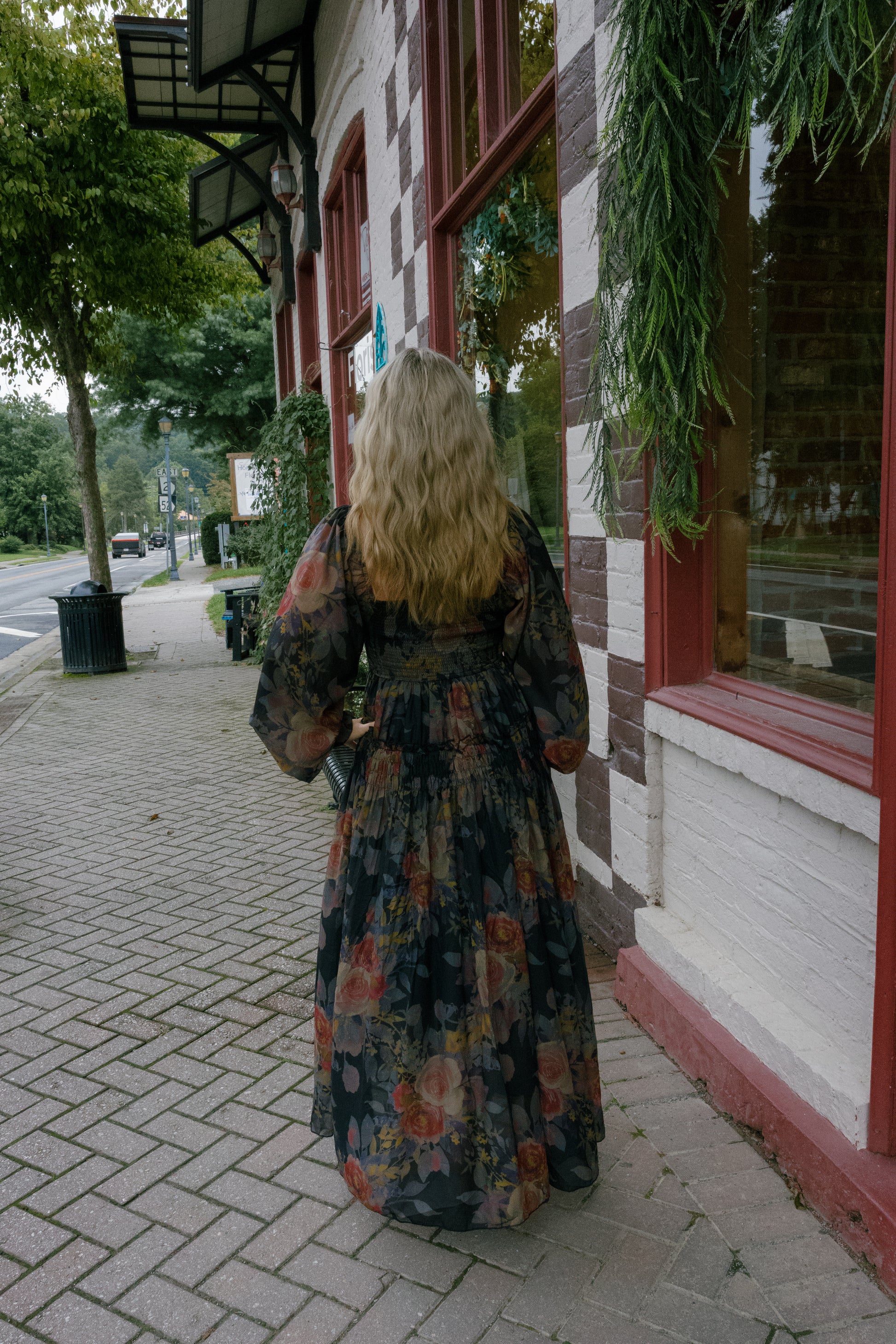 A floral-print woven maxi dress with the following features: Wrinkle-texture fabric. Sweetheart neckline with ruffle. Smocked bodice with wide waistband. 3/4-length puff sleeves with ruffle cuffs. Smocked skirt detail with ruffle. Lettuce-edge detailing throughout. Open back. High waist. Sleeveless lining. Ankle length.