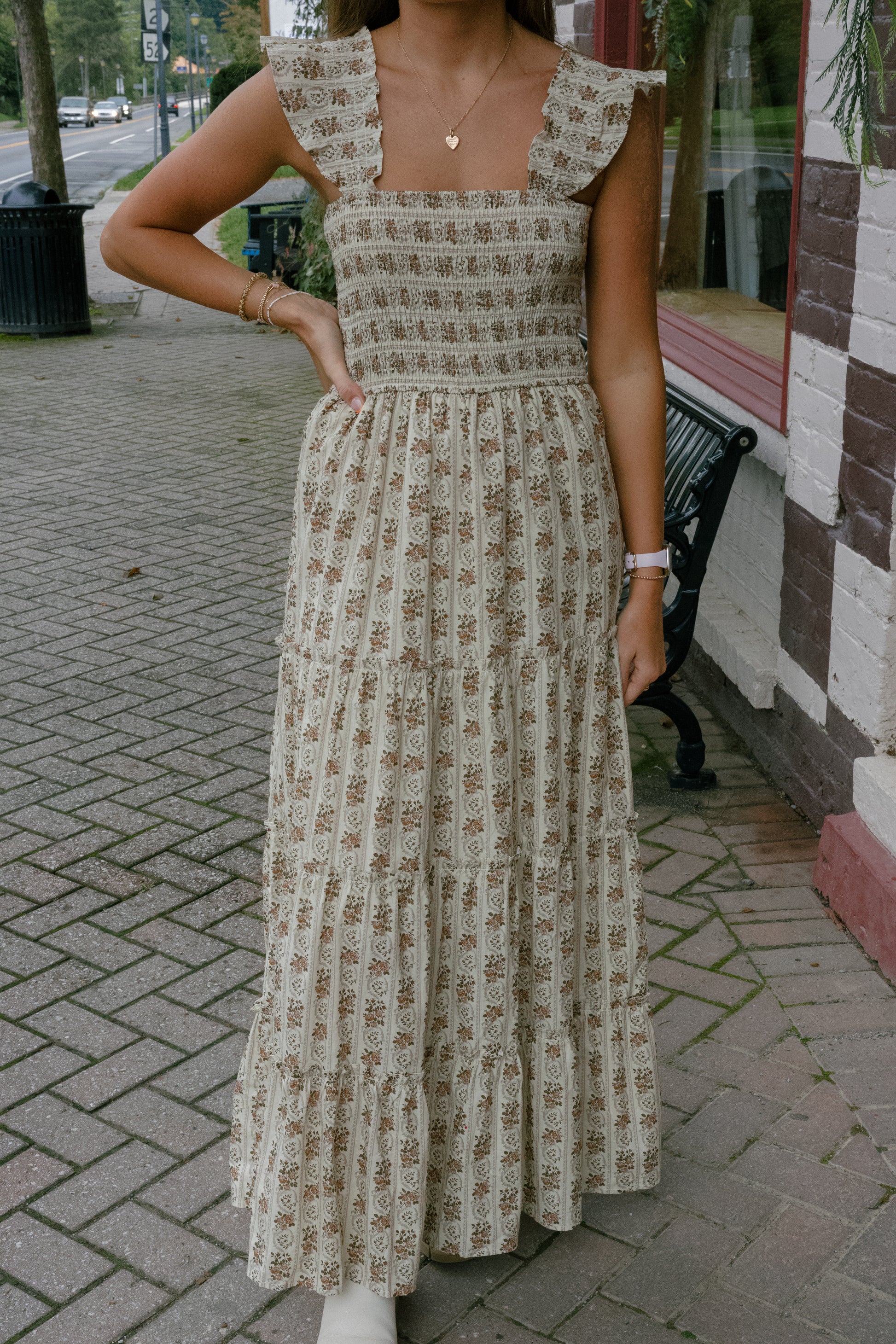 VINTAGE ROMANTIC FLORAL TIERED CASUAL FEMININE SUMMER MAXI DRESS