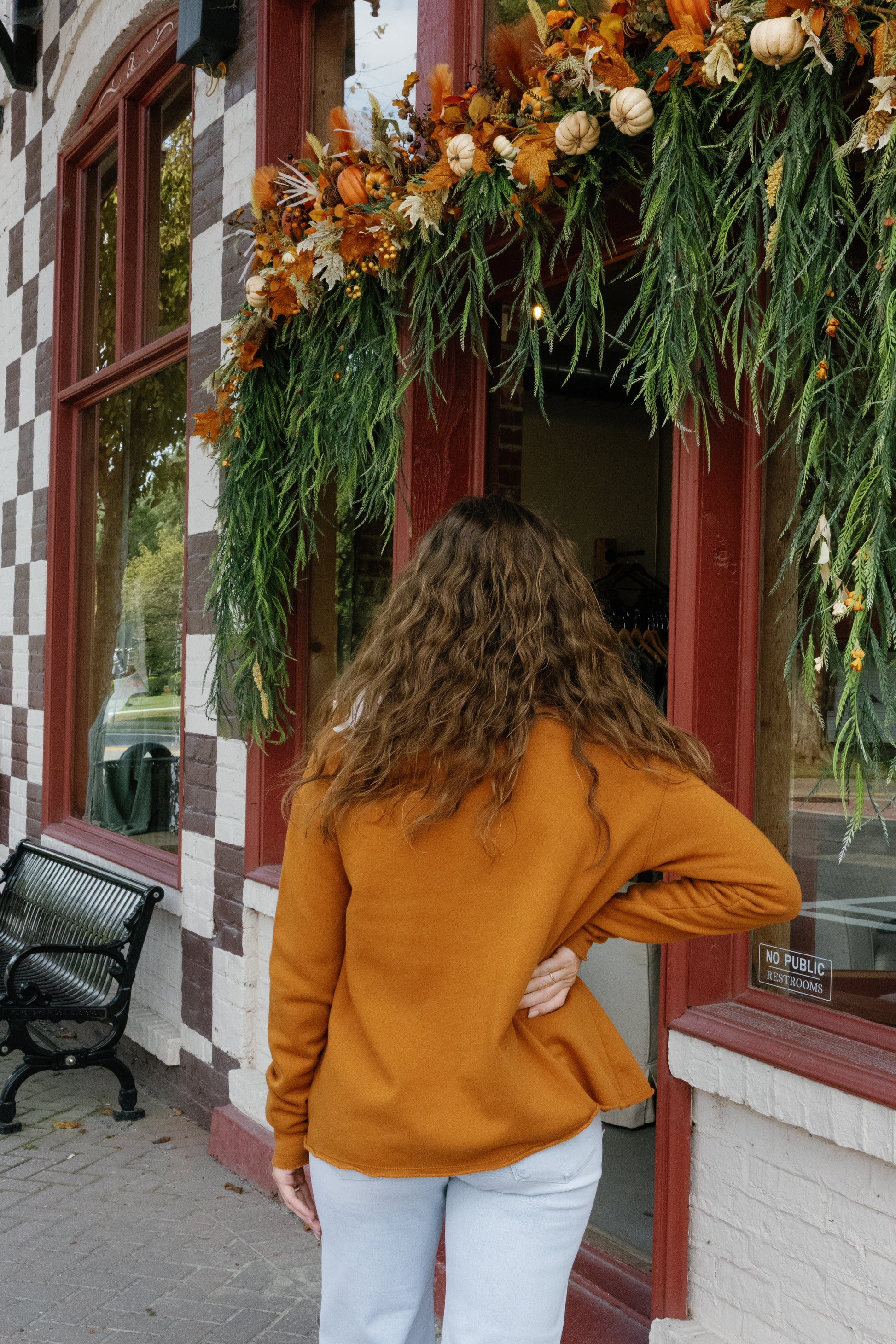 Henley-style long sleeve with a V-neck and raw-edge hem for a vintage look. Perfect for brunch or lunch, this versatile tee pairs effortlessly with denim for a casual yet polished vibe! 100%cotton