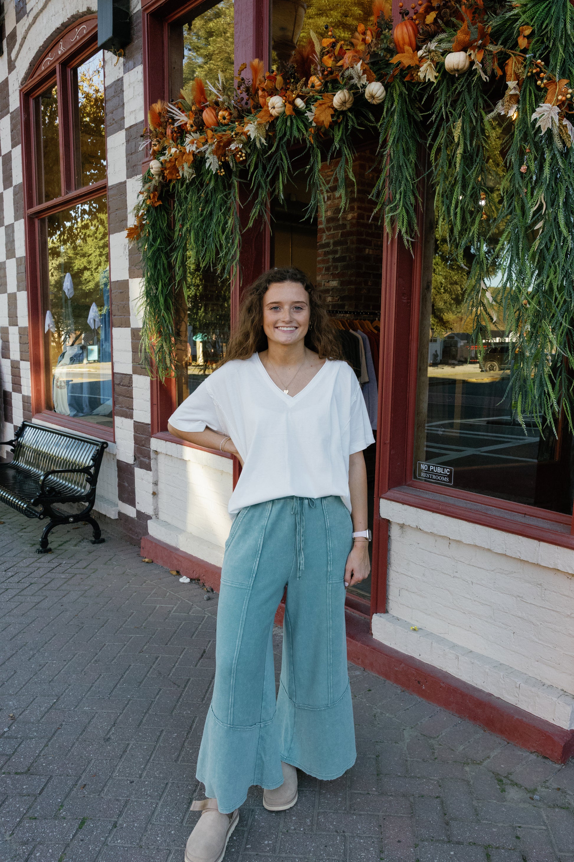 TEXTURED MINEREAL WASHED BELLBOTTOM PANTS