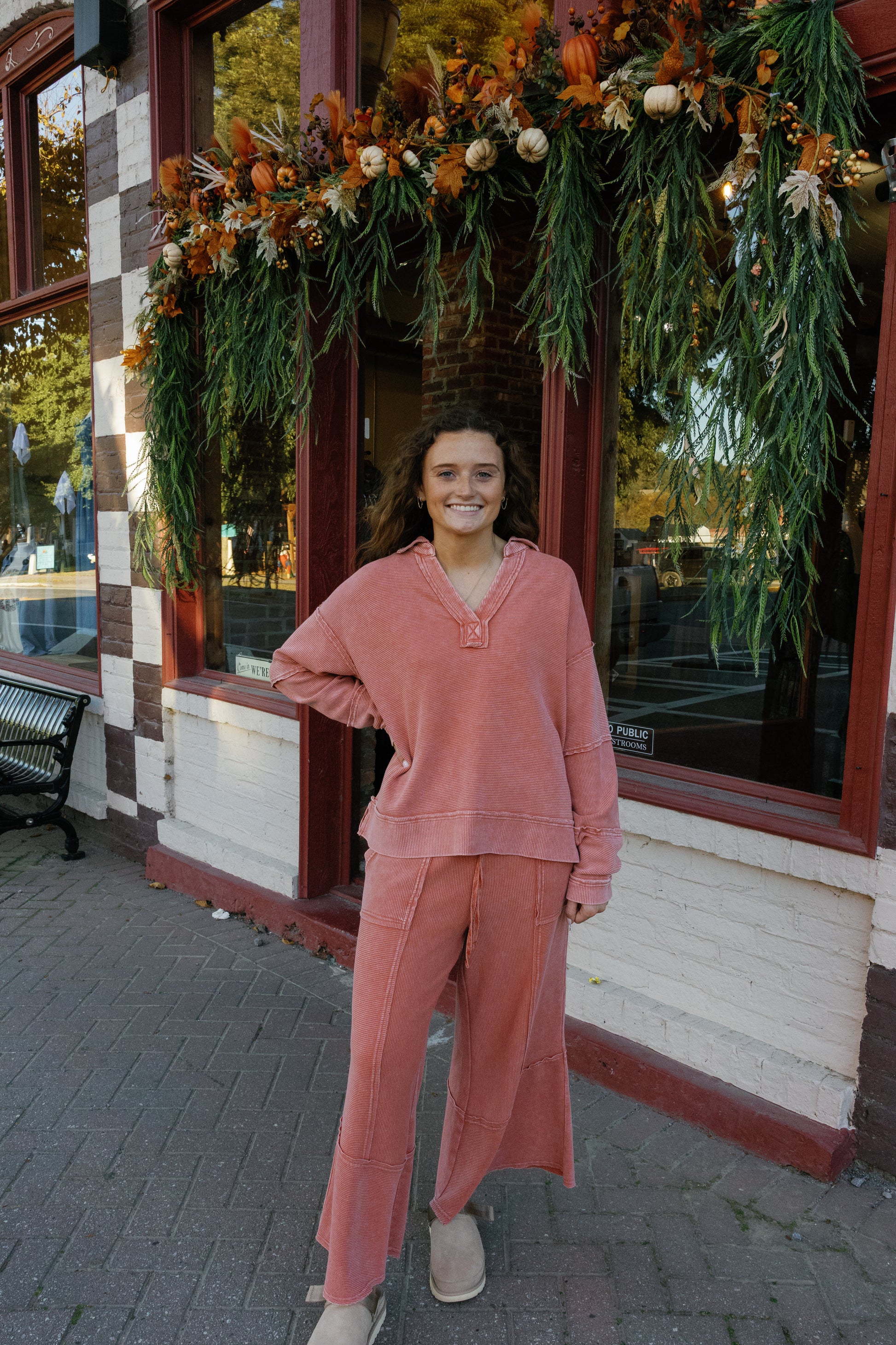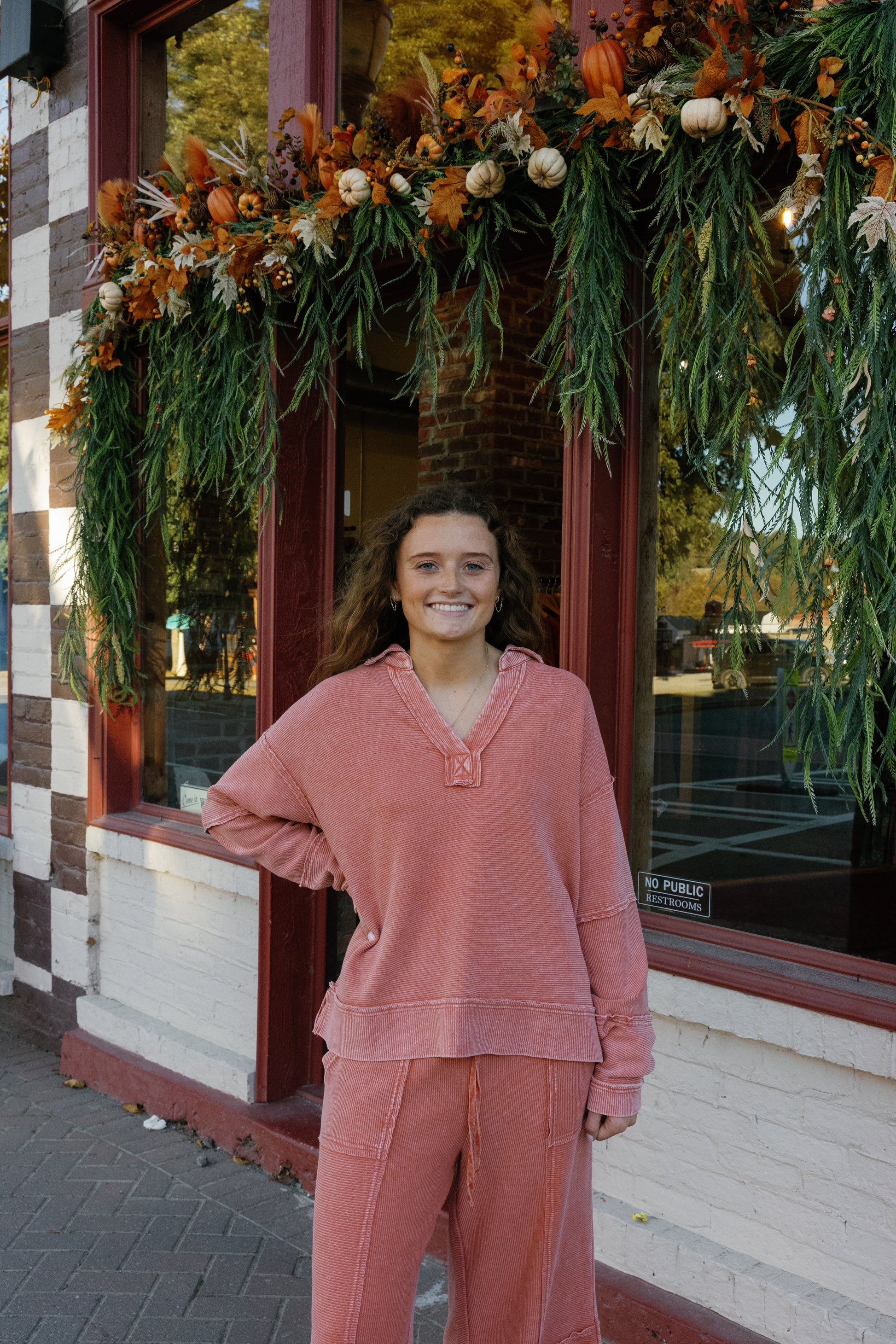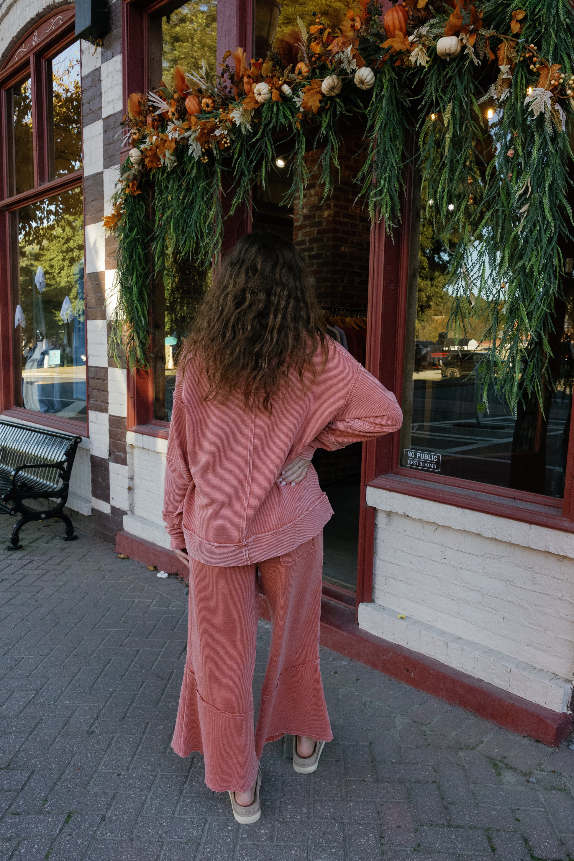 -LS TEXTURED THERMAL MINERAL WASHED PULLOVER
